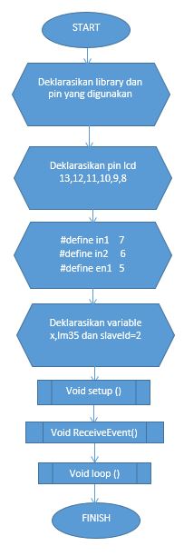 Untuk kontrol kipas, digunakan hasil pembacaan dari lm35. Saat lm35 mengukur suhu ruangan berada di atas 25°C, maka data pembacaan dari master akan dikirim ke slave 2, hasil pembacaan akan ditampilkan pada lcd, dan motor kipas akan berputar. Untuk kondisi lain, ketika suhu ruangan naik hingga 30°C, maka motor akan berputar lebih cepat. Sedangkan untuk suhu dibawah 20°C, motor kipas akan berhenti berputar.